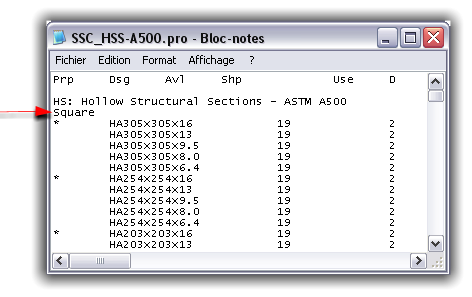 This command will show you a grid control in dependent modeless dialog box with all Steel Data contained in the *.pro file. (See below)
