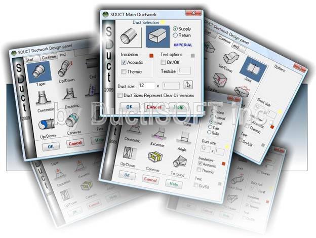 SDUCT R19 allows you to quickly draw double line ductwork, using an intuitive graphical interface. The goal of this program is to decrease the drafting time while at the same time making your drawings look consistent.