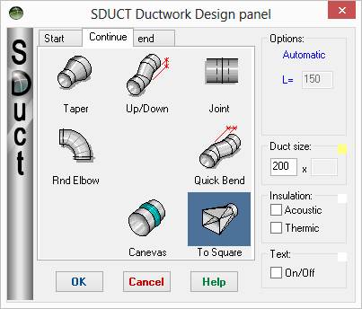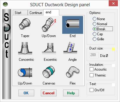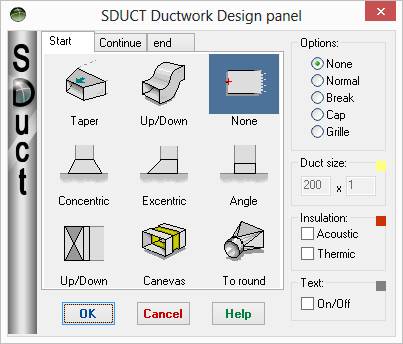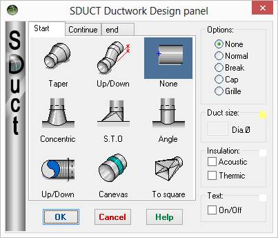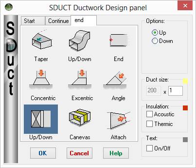 This option allows you to transition from one ductsize to another, when you select this option the DuctSize box will become available so that you can indicate the new ductsize.