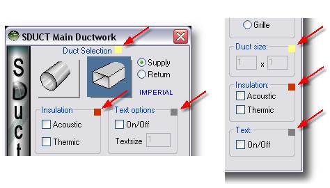 In this section you choose which type of duct you are going to draw, click on the appropriate button to highlight it, the one on the left indicates that you are going to draw round ductwork, the one on the right indicates that you are going to draw rectangular ductwork.