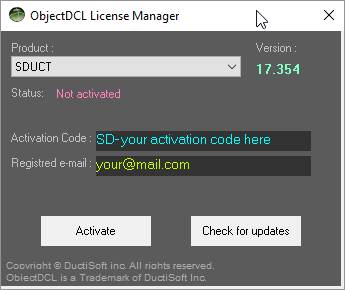 Note: SDUCT work with ObjectDCL technologie. You must download and install ObjectDCL to use this application. For more information about ObjectDCL, please visit the website at: http://www.ObjectDCL.com